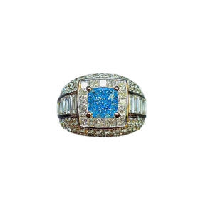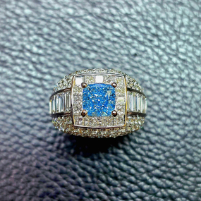 實驗室藍色彩鑽枕形男戒2克拉