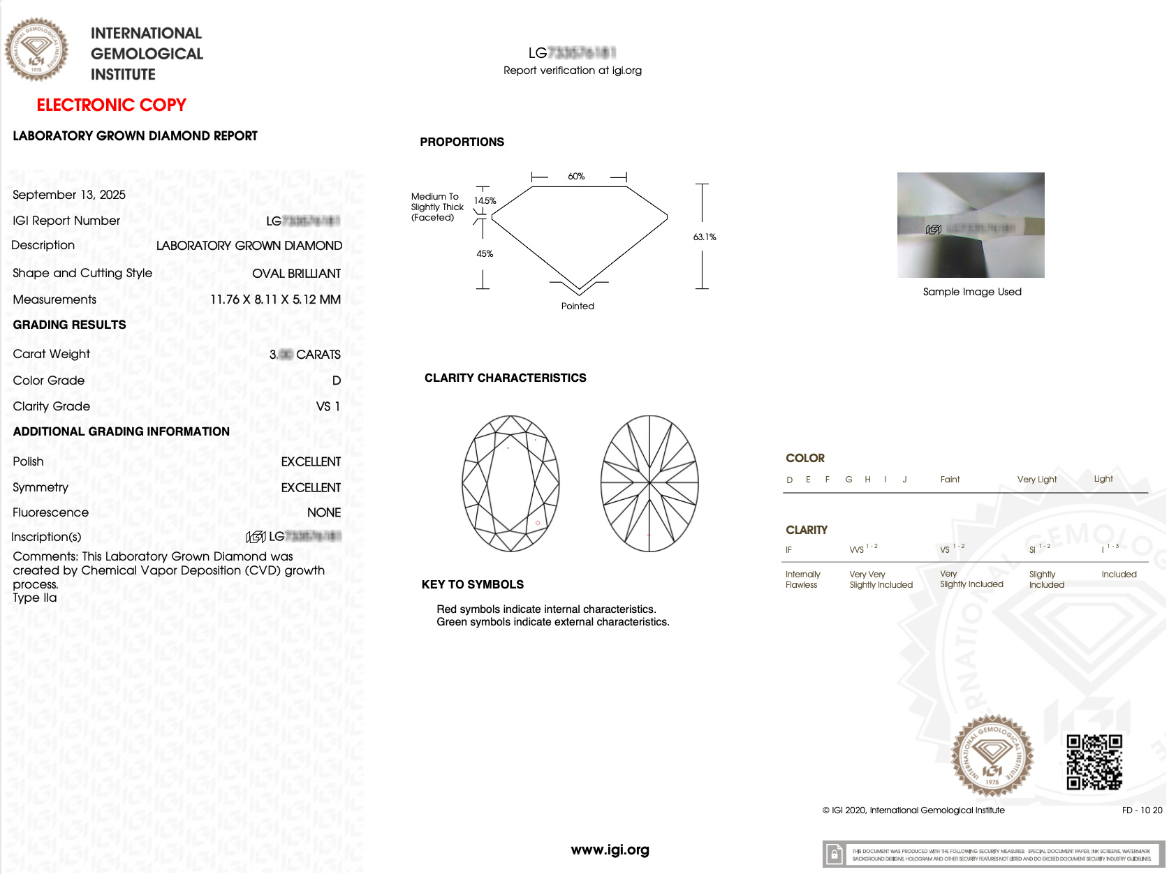 實驗室鑽石橢圓形IGI.3克拉D.vs1