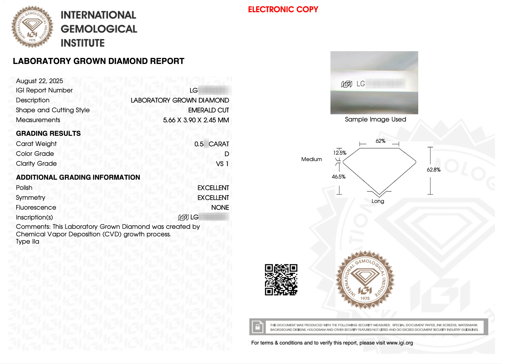 實驗室鑽石祖母綠形lGl.50分D.vs1