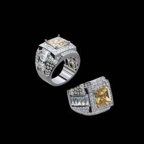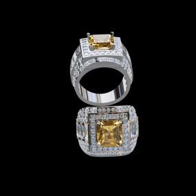 實驗室黃彩鑽枕形男戒5克拉